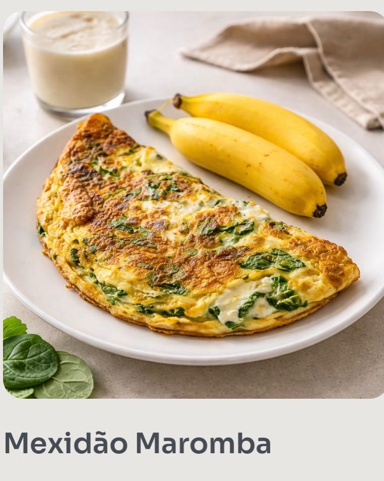 Mexidão Maromba4 ovos+ espinafre+ requeijão light+ whey protein +2 bananas