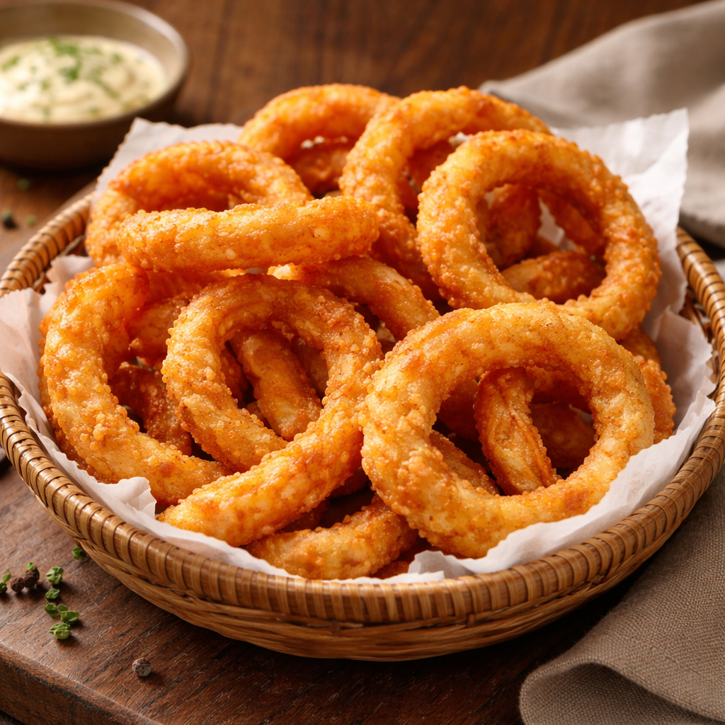 Anéis de cebolaPorção de Anéis de Cebola