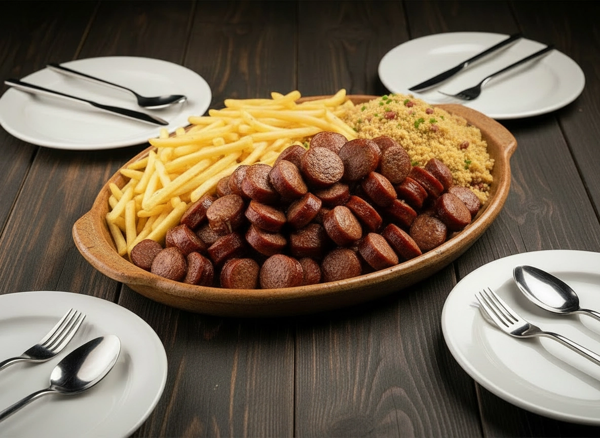 Porcao De CalabresaLinguicinha calabresinha + Fritas + Farofa + Maionese